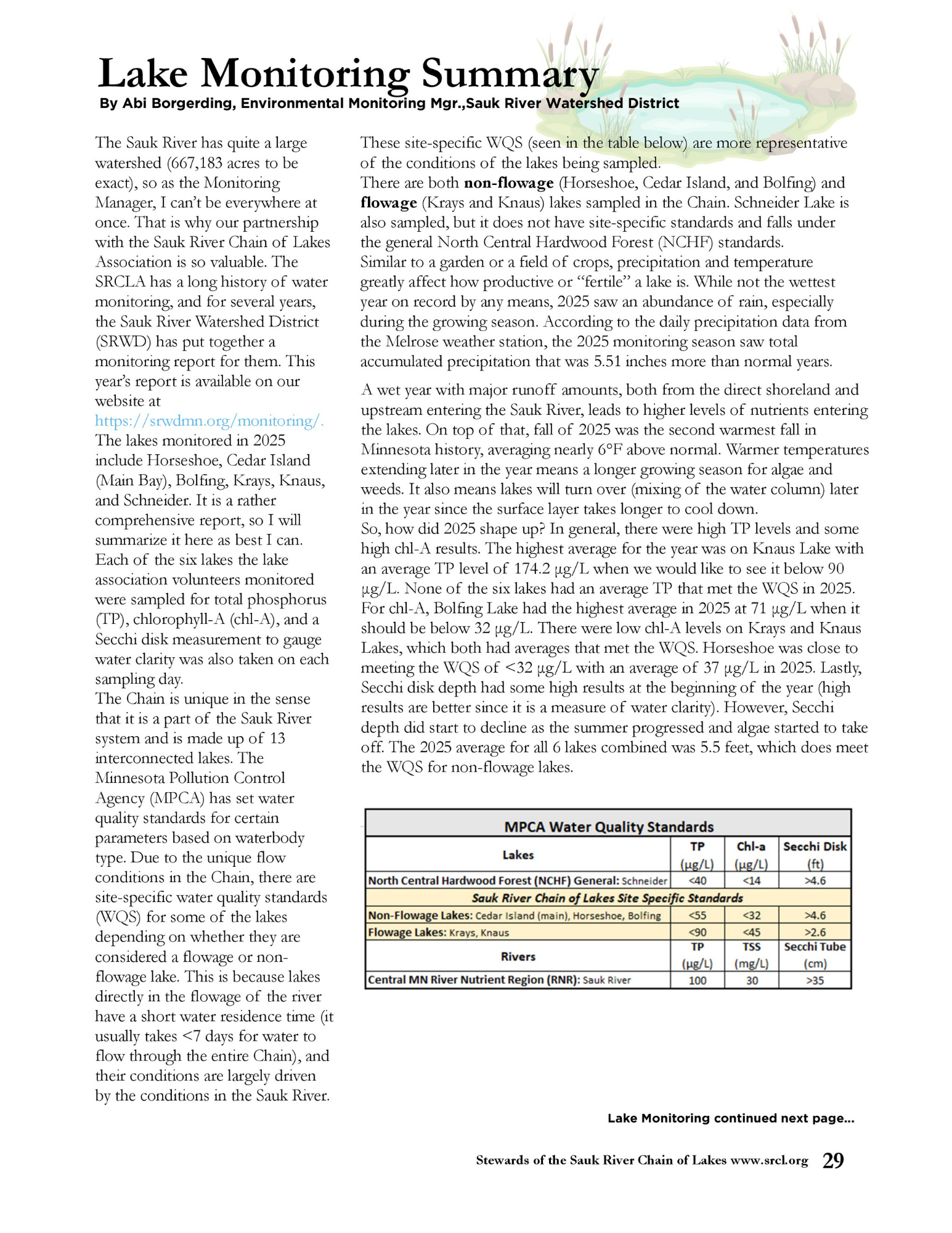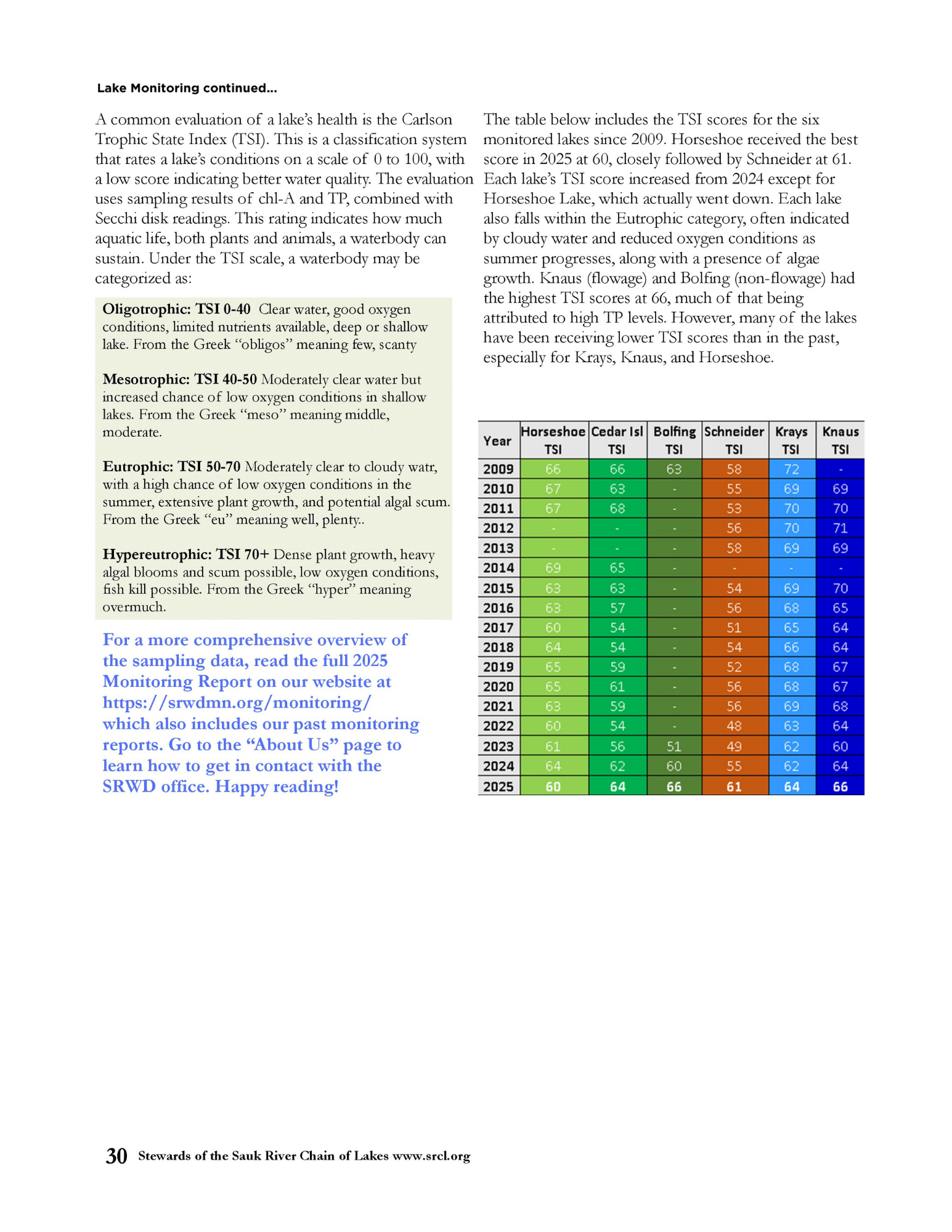 Lake Monitoring Summary